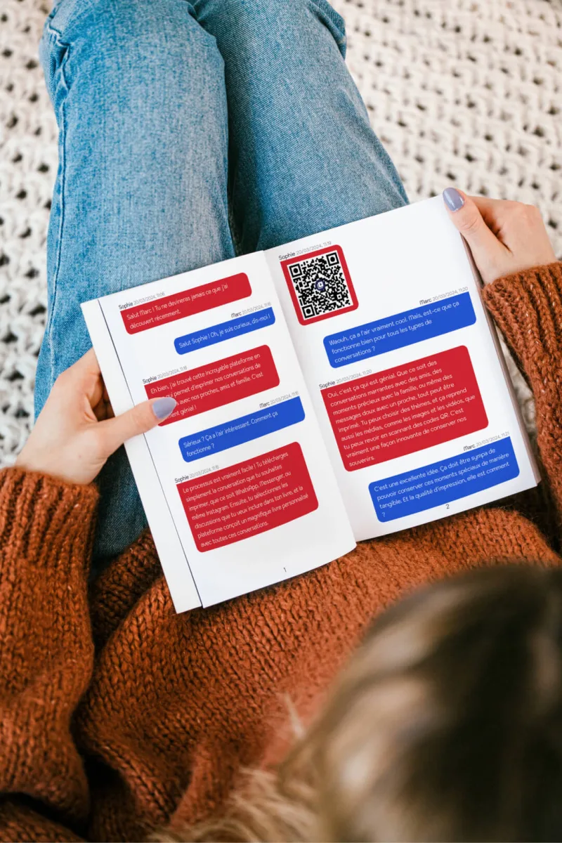 Envisagez la possibilité de saisir ces instants éphémères et de les métamorphoser en un récit concret et durable. C’est précisément ce que nous proposons : la transformation de vos échanges numériques en une superbe chronique imprimée.